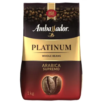 - Кофе в зернах AMBASSADOR "Platinum" 1 кг, арабика 100% — это продукция бренда AMBASSADOR. В нашем магазине представлен широкий ассортимент товаров AMBASSADOR.
