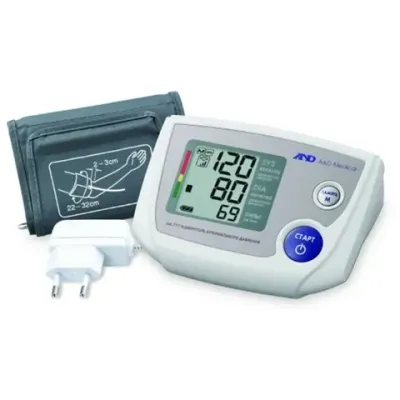 Цифровой автоматический тонометр AND UA-777AC для измерения артериального давления и частоты пульса с манжетой для рук с длиной окружности плеча 22–32 см и сетевым адаптером. Предназначен для применения в качестве индивидуального средства контроля артериального давления и частоты пульса. Главные преимущества тонометра AND UA-777AC: широкий набор пользовательских функций, который позволяет проводить точные и безболезненные измерения, и невысокая цена. Функция памяти на 90 измерений и расчет сре