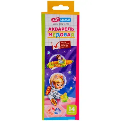 - Цена на Акварель ArtSpace "Космонавты", медовая, 14 цветов, без кисти, картон, европодвес составляет 35,53 рублей. При оптовом заказе цена от 28,92 рублей.