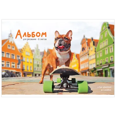 Альбом для рисования 08л., А4, на скрепке ArtSpace "Питомцы. Dog on skateboard", обложка-офсет