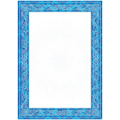 Универсальный бланк, который может быть использован для печати грамот, дипломов, сертификатов, благодарственных писем и прочих поздравительных и наградных бланков. Изготовлен из импортного целлюлозного мелованного картона плотностью 190 г/м2. Отделка выполнена тиснением фольгой. Формат - А4. Бланк подходит для цветной печати.