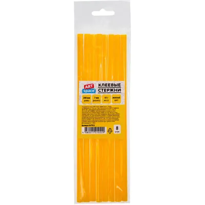 - Клеевые стержни ArtSpace, диаметр 7мм, длина 200мм, желтые, набор 8шт., европодвес — это продукция бренда ArtSpace. В нашем магазине представлен широкий ассортимент товаров ArtSpace.