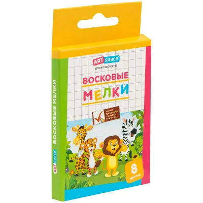 Мелки восковые ArtSpace "Зверята", 08цв., круглые, картон, европодвес