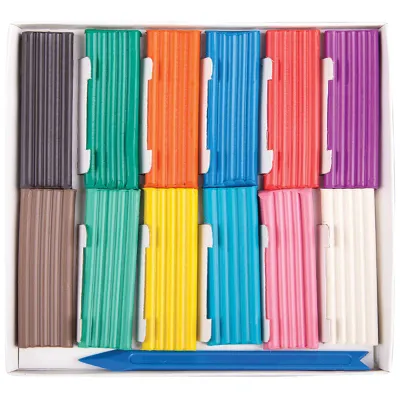 Школьный пластилин. В наборе 12 брусочков и стек.