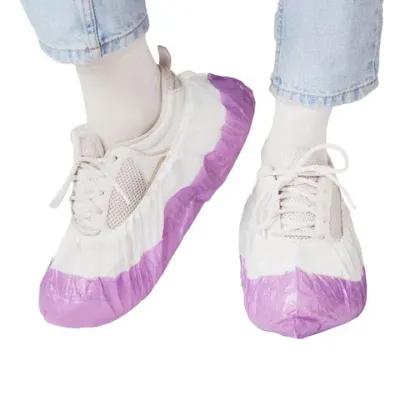 Бахилы двойные, КОМПЛЕКТ 100 шт. (50 пар), ЭКСТРА, 39х14 см, 32 мкм, 3 г, бело-фиолетовые, ELEGREEN, ПНД-8/8/1р-Б-Ф