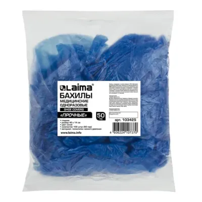 Бахилы КОМПЛЕКТ 100 штук (50 пар) в упаковке, ПРОЧНЫЕ, 40х14 см, 4 г, ПНД, LAIMA, 103425