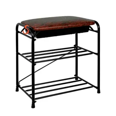 Банкетка для обуви "Альфа-13СЯ", 450х300х480 мм, 2 полки, ящик, металл/кожзам, черный/коричневый, ПДОА13СЯ Ч