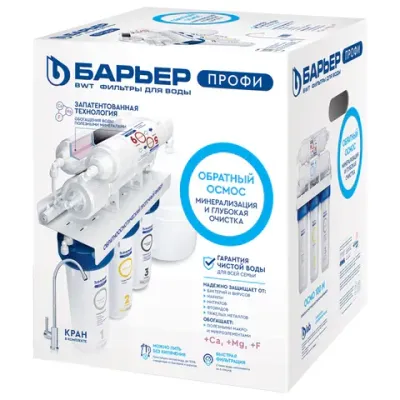 Фильтр БАРЬЕР "ПРОФИ Осмо 100 М" – это не просто система очистки, а полный цикл преобразования водопроводной воды в физиологически полноценную питьевую.