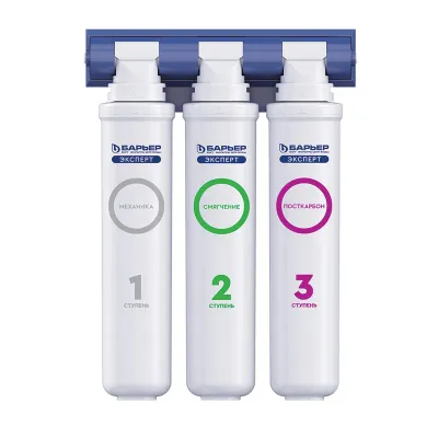- Основные характеристики Фильтр для воды с краном в комплекте БАРЬЕР "ЭКСПЕРТ Жесткость", 3 ступени, ресурс 10000 л, Н221Р08: Цвет корпуса: Синий/белый, Серия: Эксперт, Тип: Проточный фильтр для воды, Размер: 26,7х9,6х36,7. Полный список характеристик доступен на странице товара.