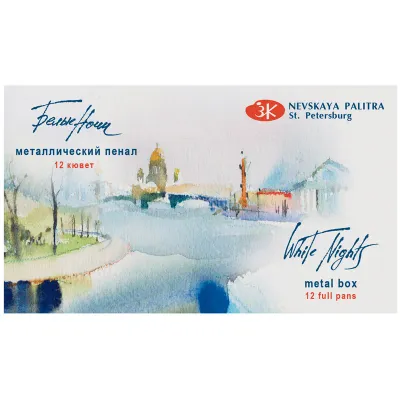 Акварель Белые ночи, художественная, 12цв.*2,5мл, кюветы, металл