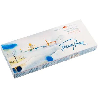 - Основные характеристики Акварель Белые ночи, художественная, 12цв., в тубах, пластиковый коррекс, картон: Количество цветов: 12, Назначение: Художественные, Тип: Акварель, Емкость: Туба. Полный список характеристик доступен на странице товара.