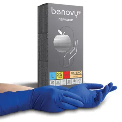 - Перчатки латексные смотровые 25 пар (50 штук), прочные, размер 8-9, L (большой), BENOVY High Risk — это продукция бренда BENOVY. В нашем магазине представлен широкий ассортимент товаров BENOVY.