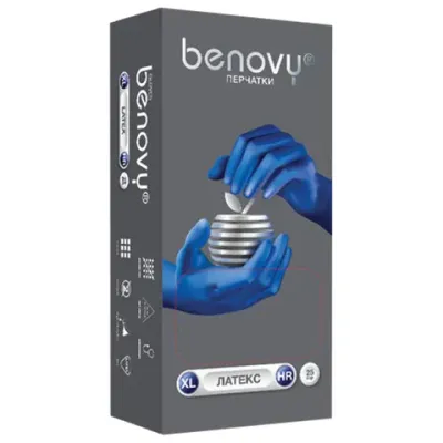 - Перчатки латексные смотровые 25 пар (50 штук), прочные, размер 9-10, XL (очень большой), BENOVY High Risk — это продукция бренда BENOVY. В нашем магазине представлен широкий ассортимент товаров BENOVY.