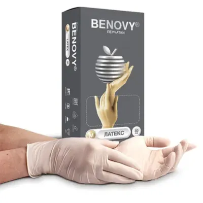 - Перчатки латексные смотровые 50 пар (100 штук), размер 7-8, M (средний), бежевые, BENOVY Latex Chlorinated — это продукция бренда BENOVY. В нашем магазине представлен широкий ассортимент товаров BENOVY.