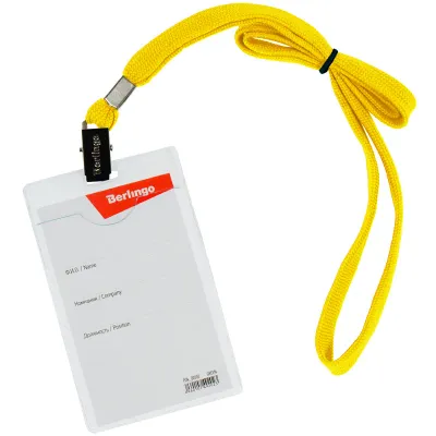 - Бейдж вертикальный Berlingo, 63*100мм (размер вставки 57*84мм), с клипсой на желтом шнурке — это продукция бренда Berlingo. В нашем магазине представлен широкий ассортимент товаров Berlingo.