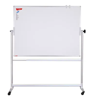 Магнитно-маркерная доска размера 90*120 см в алюминиевой рамке на мобильной подставке позволяет представить аудитории значительно большее количество данных, чем стандартные модели, закрепляемые на стене. Информация может наноситься на обе стороны доски, которая за счет крепление к раме вращается в горизонтальной плоскости на 360 градусов. Может фиксироваться в любом положении. Снабжена лотком для аксессуаров и тормозной системой для предотвращения случайного движения.