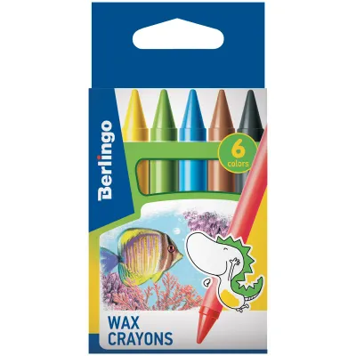 Мелки восковые Berlingo "Рыбки", 06цв., круглые, картон, европодвес