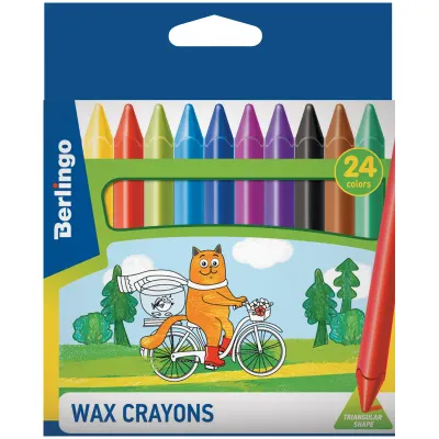Мелки восковые Berlingo "Жил-был кот", 24цв., трехгранные, картон, европодвес