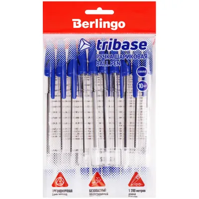 - Цена на Набор шариковых ручек Berlingo "Tribase", синяя, 10шт., в ассорт., пакет, европодвес составляет 60,55 рублей. При оптовом заказе цена от 48,61 рублей.