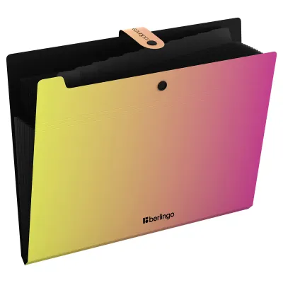 - Папка 12 отделений Berlingo "Radiance", А4, 600мкм, на кнопке, желтый/розовый градиент — это продукция бренда Berlingo. В нашем магазине представлен широкий ассортимент товаров Berlingo.