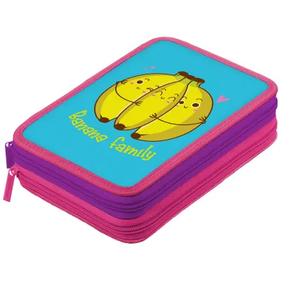 Berlingo Bananas − удобный пенал для школьных канцелярских принадлежностей с ярким дизайном. Размер − 200*140*45 мм. Модель имеет два вместительных отделения на молнии. Материал лицевой и внутренней поверхности − полиэстер с принтом. Внутри имеются резиночки-крепления для канцтоваров. Упакован в индивидуальный пакет. Поставляется без наполнения.
