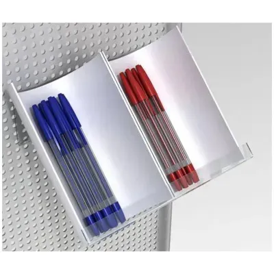Желоб навесной под ручки ТМ Berlingo предназначен для оптимизации выкладки ручек ТМ и повышения продаж в торговой точке. Может располагаться как на полке или в прикассовой зоне, так и крепиться к перфопанели специальными винтами в комплекте. Вместимость ячейки: до 60 ручек.