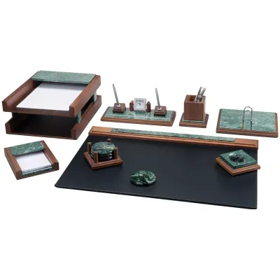 Набор настольный Bestar "Zeus" 8 предметов, двойной лоток, зеленый мрамор, орех