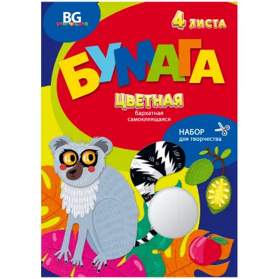 - Бархатная бумага самоклеящаяся А4, BG, "Смешной Лемур", 4л., 4цв., в папке — это продукция бренда BG. В нашем магазине представлен широкий ассортимент товаров BG.