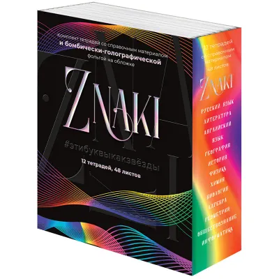 - Основные характеристики Комплект (12 шт.) предметных тетрадей 48л. BG "Znaki", тиснение голографической фольгой: Тип: Комплект предметных тетрадей, Формат: А5, Блестки/глиттер: Нет, Дизайн обложки: Рисунок. Полный список характеристик доступен на странице товара.