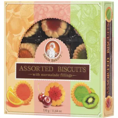 - Печенье БИСКОТТИ "Santa Bakery", ассорти с мармеладными начинками, 330 г — это продукция бренда БИСКОТТИ. В нашем магазине представлен широкий ассортимент товаров БИСКОТТИ.