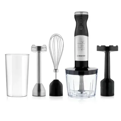 - Блендер погружной BRAYER BR1244, 800 Вт, 8 скоростей, 4 насадки, стакан, черный — это продукция бренда BRAYER. В нашем магазине представлен широкий ассортимент товаров BRAYER.