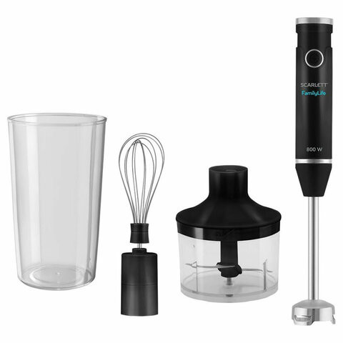 Блендер погружной SCARLETT SC-HB42F63, 800Вт, 2 режима, измельчитель, венчик, стакан, черный по низкой цене оптом
