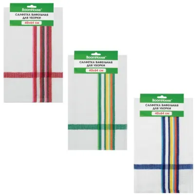 - Салфетка вафельная универсальная, ХЛОПОК, 40х64 см, цветная полоска, ассорти, BOOMHOUSE (БУМХАУС), 700884 — это продукция бренда BoomHouse. В нашем магазине представлен широкий ассортимент товаров BoomHouse.