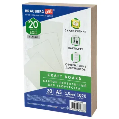 - Картон переплетный, толщина 1,5 мм, А5 (148х210 мм), КОМПЛЕКТ 20 шт., BRAUBERG ART, 665558 — это продукция бренда BRAUBERG ART. В нашем магазине представлен широкий ассортимент товаров BRAUBERG ART.