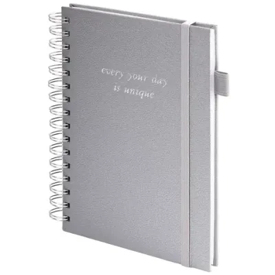 Бизнес-тетрадь на гребне А5 148х216 мм, BRAUBERG "Calipso" под кожу, резинка, клетка, 80 л., серая, 116253