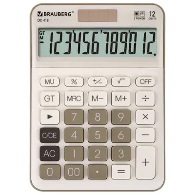 - Калькулятор настольный BRAUBERG DC-118-BG (175х126 мм), 12 разрядов, двойное питание, бежевый, 272963 — это продукция бренда BRAUBERG. В нашем магазине представлен широкий ассортимент товаров BRAUBERG.