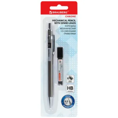 Карандаш механический 0,5 мм + грифели HB 12 штук на блистере, BRAUBERG "CHROME", 181969