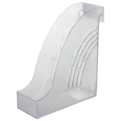 Отлично подходит для хранения бумажной продукции формата А4 на столе или в шкафу. Изготовлен из полистирола прозрачного цвета. Имеется табличка для маркировки. Одно вместительное отделение шириной 95 мм. Устойчивая конструкция. Размер - 255х290 мм.