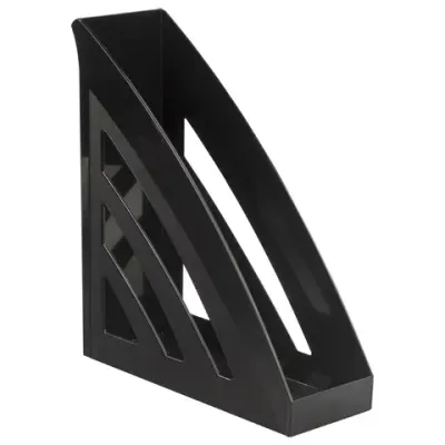 Изготовлен из прочного полистирола. Размер (ГхШхВ) - 245х90х285 мм. Обладает устойчивой конструкцией, благодаря которой удобен для хранения объемных документов и папок. Выполнен в черном цвете.