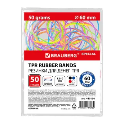 - Резинки банковские TPR универсальные, диаметр 60 мм, 50 г, ЯРКИЕ ЦВЕТА, BRAUBERG SPECIAL, 440190 — какой бренд?