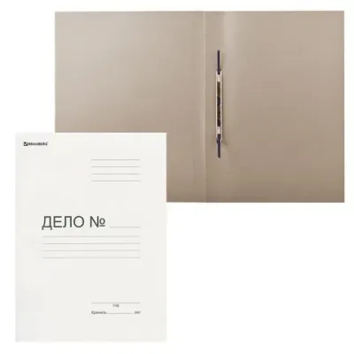 Подходит для документов формата А4 и меньше. Изготовлен из белого мелованного картона плотностью 440 г/м2. Оснащен металлическим механизмом сшивания. Вмещает до 200 листов стандартной плотности. Имеет надпись "Дело №" на обложке. Поставляется в гофрокоробе.