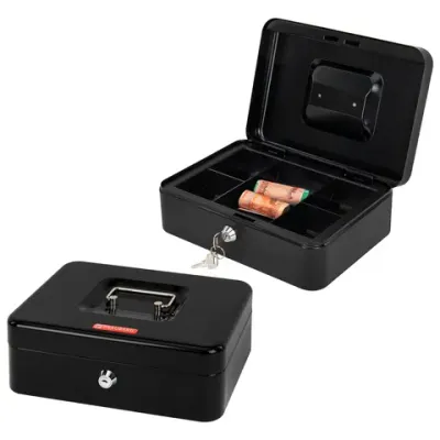 Перейти к содержимомуЯщик для денег, ценностей, документов, печатей, 90х180х250 мм, ключевой замок, черный, BRAUBERG, 291349