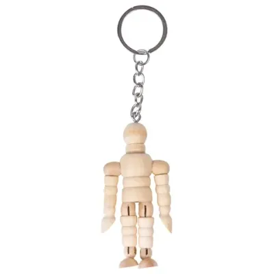 Деревянный брелок представляет из себя упрощенную модель человека, отдельные части которой скреплены между собой металлическими болтиками в тех местах, где сгибаются суставы. Высота - 7 см. Брелок возможно декорировать самостоятельно, тем самым создать собственный и неповторимый дизайн стильного аксессуара. Такой брелок станет модным решением в качестве держателя связки ключей.