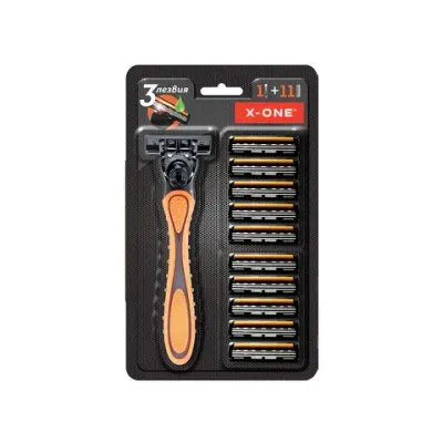 - Цена на Бритвенный станок многоразовый мужcкой, 3 лезвия, 11 кассет, оранжевый, X-ONE (ИКС-УАН), 700023 составляет 219,52 рублей. При оптовом заказе цена от 185,14 рублей.
