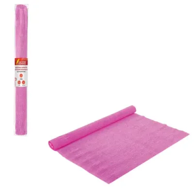 Крепированная бумага представляет собой бумажную продукцию с неровной, складчатой поверхностью. Размер бумаги 50х250 см, плотность – 110 г/м2, удлинение при натяжении – 150%. Цвет - Розовый. Используется в основном для творчества, хенд-мейда, во флористике, свит-дизайне (изготовление букетов из конфет), скрапбукинге (техника оформления блокнотов, альбомов, коллажей и пр.), квиллинге, декупаже, при изготовлении декоративных деревьев, топиарий в технике «торцевания», и т. п. Из крепированной бум