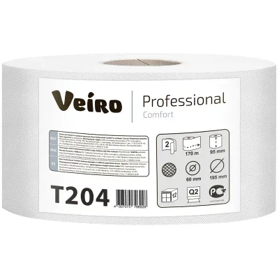 Бумага туалетная 170 м, VEIRO Professional (Система T2), КОМПЛЕКТ 12 шт., Comfort, 2-слойная, T204