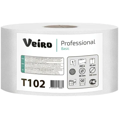 Бумага туалетная 200 м, VEIRO Professional (Система T2), КОМПЛЕКТ 12 шт., Basic, T102