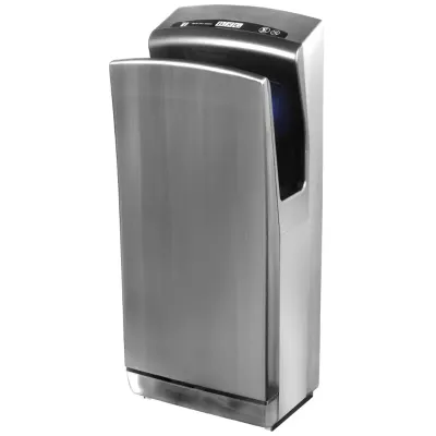 Руки становятся сухими за 7-10 секунд. Такой результат достигается благодаря высокой скорости воздушного потока и уникальной технологии подачи воздуха. Воздух подается со скорость 95 м/с, под определенным углом так, что он фактически сдувает капли воды с рук за считанные секунды! Бесконтактное управление (благодаря инфракрасным датчикам), исключает контакт с поверхностью сушилки и, как следствие, снижается уровень возможности передач и микробов и бактерий. Кроме того, возможные зоны контакта с