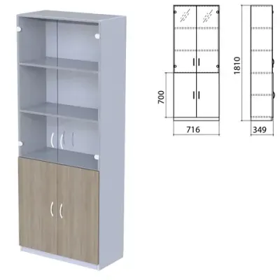 Шкаф закрытый со стеклом "Бюджет", 716х349х1810 мм, дуб сонома (КОМПЛЕКТ)