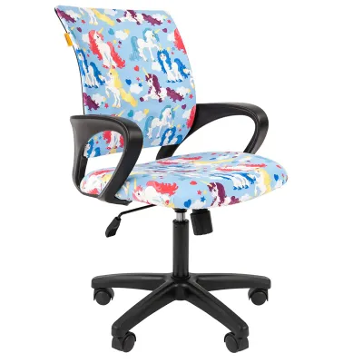 Кресло детское Chairman Kids 103, PL черн., ткань велюр, единороги, механизм качания спинки